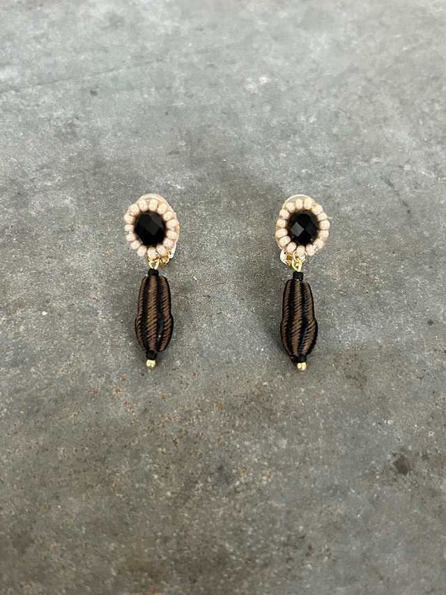 【サイズ】 縦:3.3cm 横:1.1cm 【金具素材】 ピアス:チタン イヤリング:真鍮にメッキ加工 ヴィンテージビーズ使用 下のストライプのビーズはウッドビーズに糸が編まれている珍しいビーズです