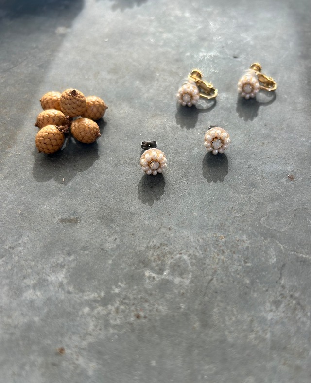 【サイズ】 縦:1.2cm 横:1cm 【金具素材】 ピアス:チタン イヤリング:真鍮にメッキ加工 ヴィンテージビーズ使用