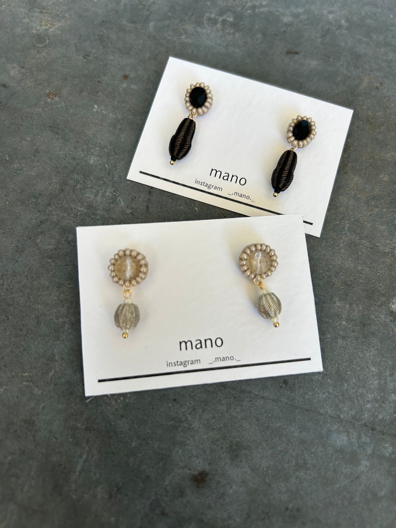 下のストライプのビーズはウッドビーズに糸が編まれている珍しいビーズです